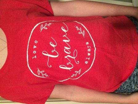 be brave, love always logo featured in white on center chest of shirt as in all other ladies' style tees